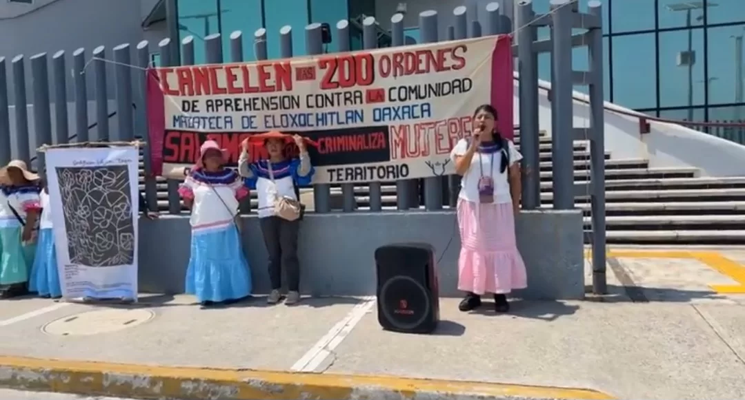 Mujeres mazatecas integrantes del colectivo Mazatecas por la Libertad instalaron un plantón indefinido frente al edificio del Poder Judicial de la Federación en Boca del Río, Veracruz, en exigencia del cese a la criminalización, persecución y violencia estructural que por más de una década ha afectado a la comunidad indígena de Eloxochitlán de Flores Magón, Oaxaca.