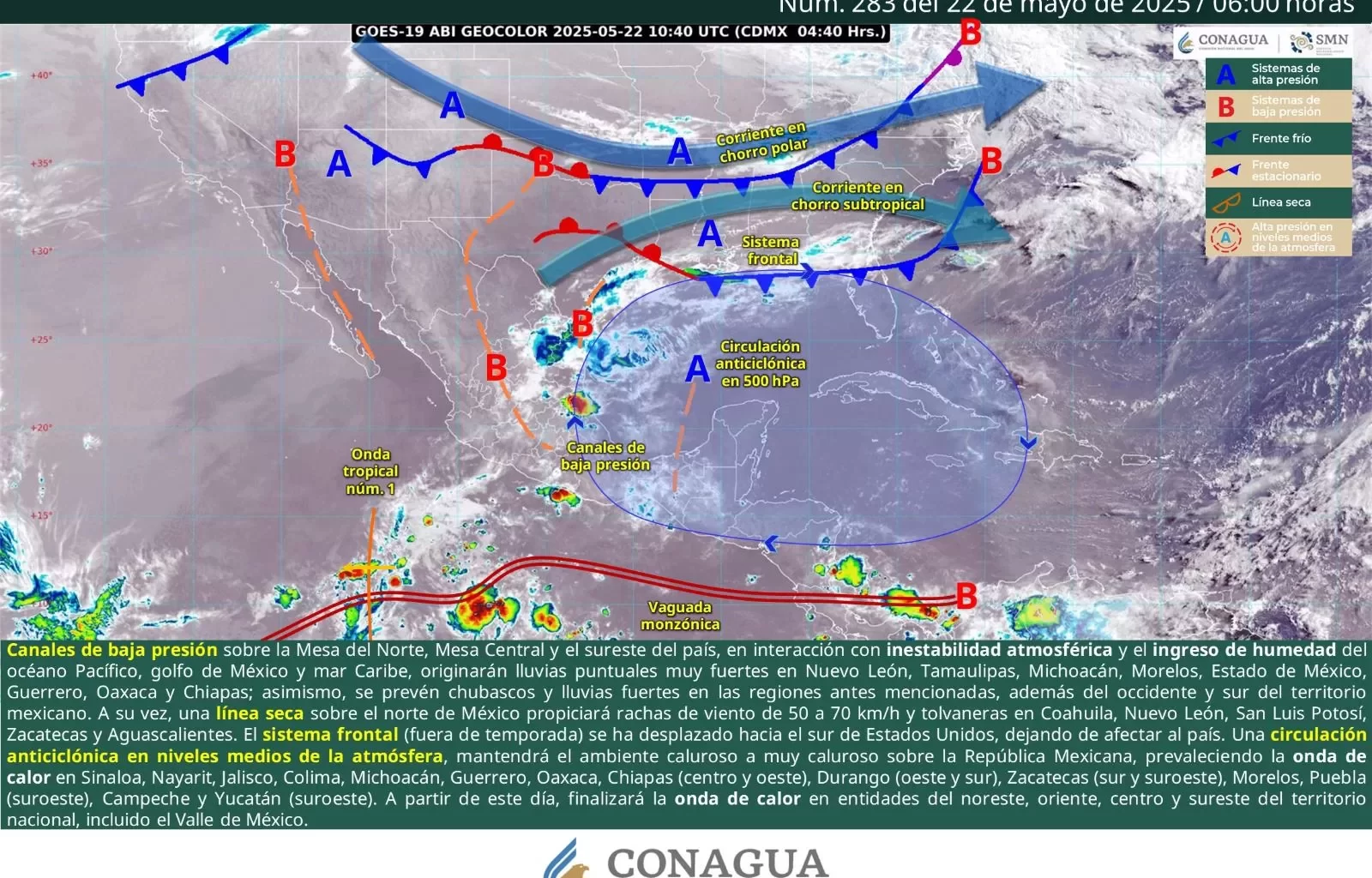 Oaxaca de Juárez, Oax. 22 de mayo de 2025.- La Coordinación Estatal de Protección Civil y Gestión de Riesgos (CEPCyGR) informa que, este jueves, el tiempo estará marcado por el término de la ola de calor debido al debilitamiento del anticiclón y a la presencia de mayor nubosidad desde primeras horas del día.