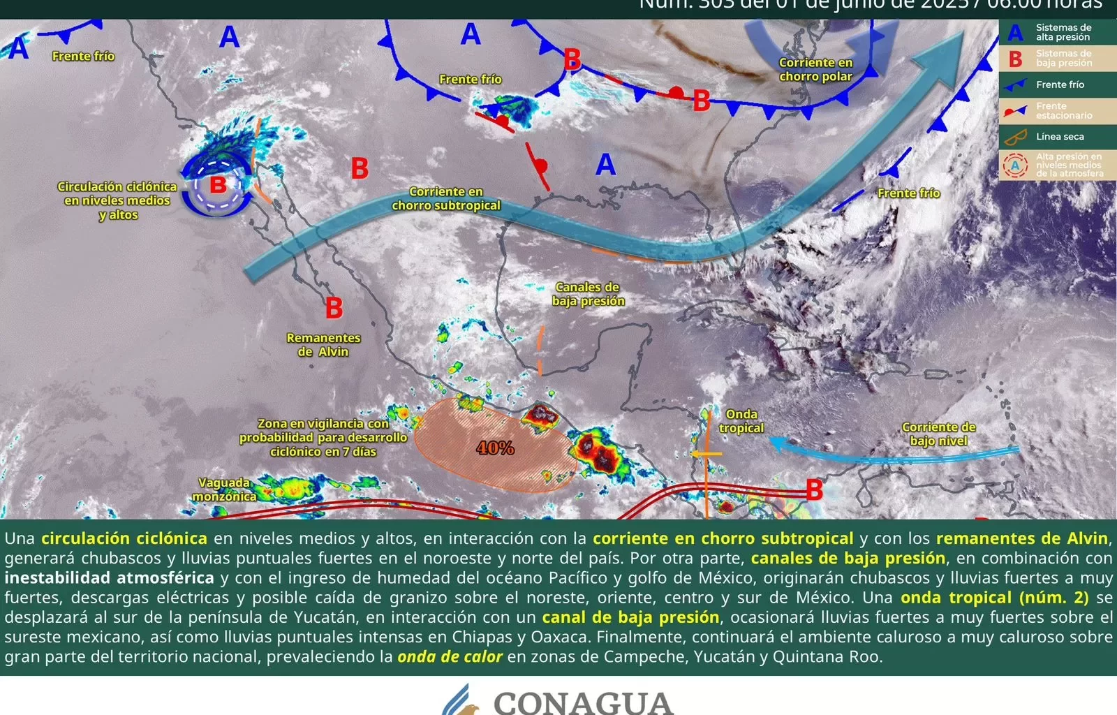 Lo anterior, debido a que continúa el arrastre de humedad de la vaguada monzónica hacia el interior del estado, manteniendo inestabilidad, especialmente durante la tarde y noche; apoyado por un canal de baja presión sobre el sureste de México, desencadenando nubosidad baja y desarrollo vertical en gran parte del estado.
