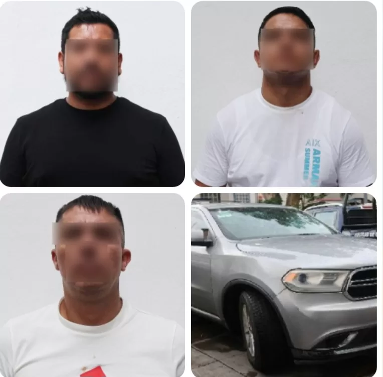 A petición de la ofendida, procedieron a la detención de las tres personas, quienes dijeron llamarse Cristian E R. E., de 34 años de edad; Daniel A. I. G., de 37 años de edad y Luis M. A. G., de 39 años de edad; todos originarios y vecinos de Ciudad de México; así también procedieron al aseguramiento de la camioneta marca Dodge tipo Journey color gris, con placas de circulación del estado de Tlaxcala.