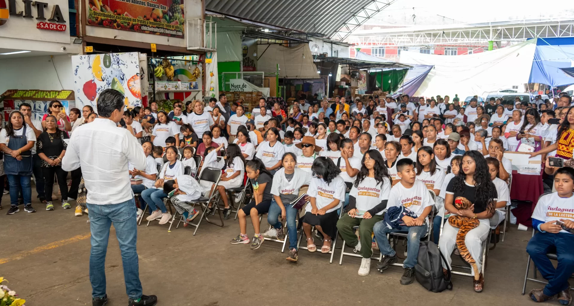Desde la Nave 4 del área de bodegas de fruta de la Central de Abasto —uno de los puntos más representativos y concurridos de la capital—, el edil compartió la lectura de Apuntes para mis hijos, del Benemérito Benito Juárez, acompañado de vecinitas y vecinitos. El texto, dijo, refleja la importancia del esfuerzo, la educación y el compromiso con el bienestar colectivo.