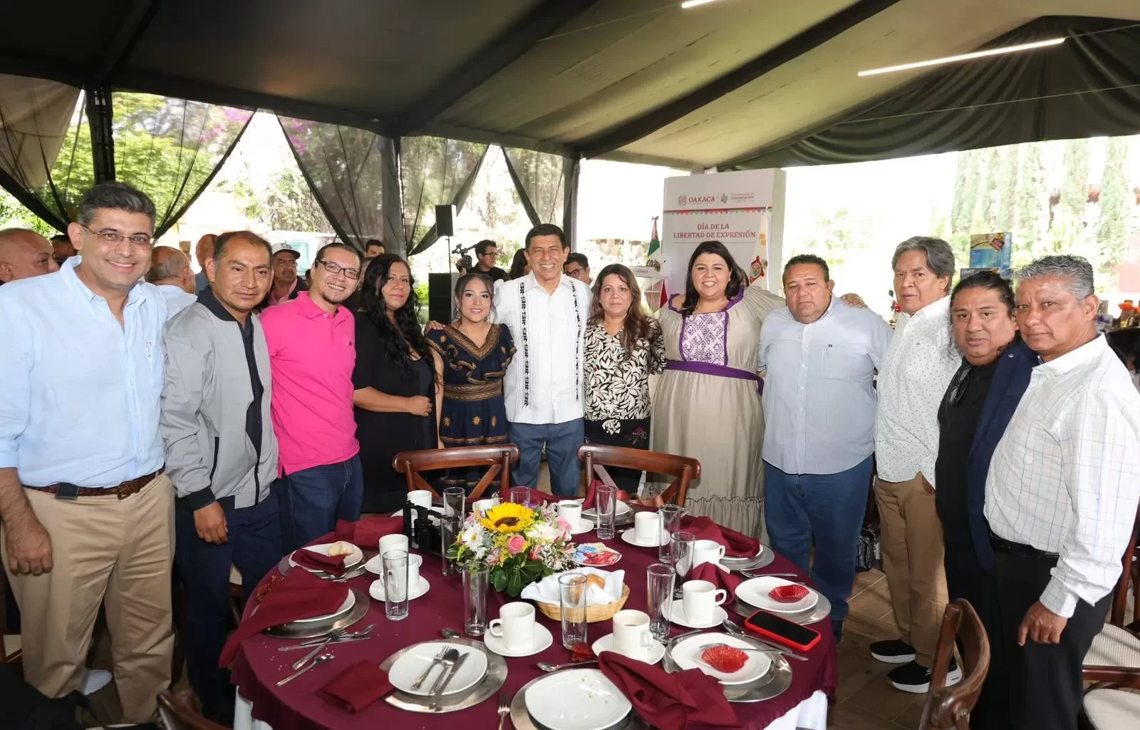 En una convivencia respetuosa y plural con las y los representantes de los medios de comunicación de las ocho regiones del estado, el Mandatario oaxaqueño reiteró que su gobierno ha protegido el derecho a la expresión libre e independiente, y no solo eso, ha promovido esta actividad fundamental.