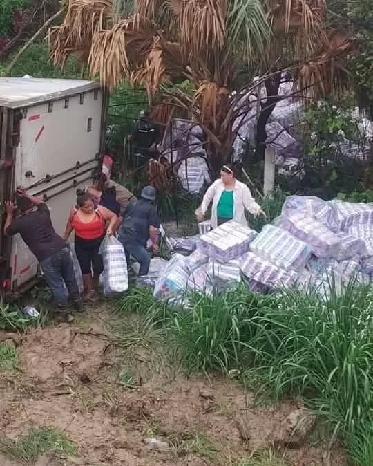 De acuerdo con los primeros reportes, la unidad perdió el control y se salió de la vía, quedando volcada y con la mercancía regada sobre el asfalto y la maleza. El accidente no solo movilizó a los cuerpos de emergencia, sino también a pobladores de las zonas aledañas, quienes comenzaron a sustraer parte de la carga en un acto de rapiña.