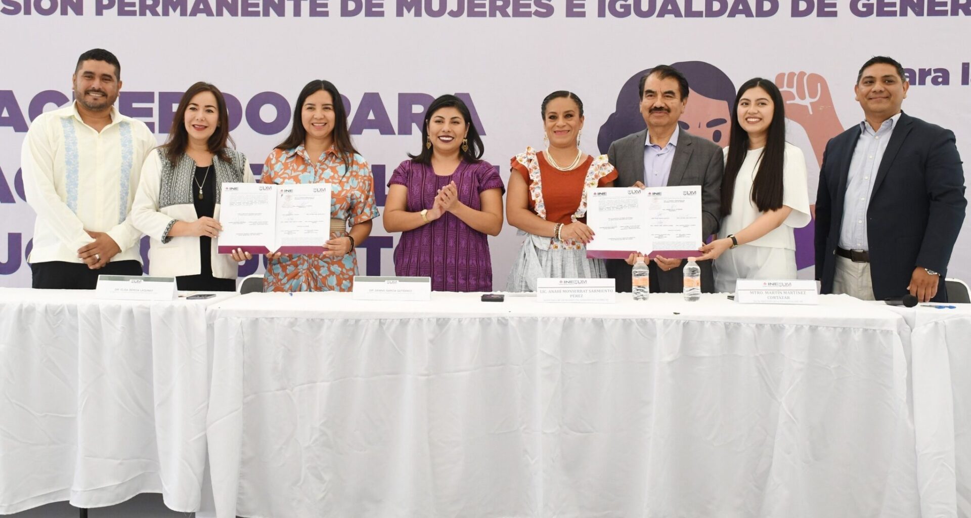 San Raymundo Jalpan, Oax., a 18 de junio de 2025.- El Congreso del Estado, a través de la Comisión Permanente de Mujeres e Igualdad de Género, suscribió un acuerdo de colaboración con la Junta Local Ejecutiva de Oaxaca del Instituto Nacional Electoral (INE), con la finalidad de establecer un Plan de Trabajo Conjunto para la promoción de una cultura de respeto de los derechos humanos de las mujeres, la paridad de género, la igualdad sustantiva, la prevención, atención y sanción de la violencia política en razón de género.