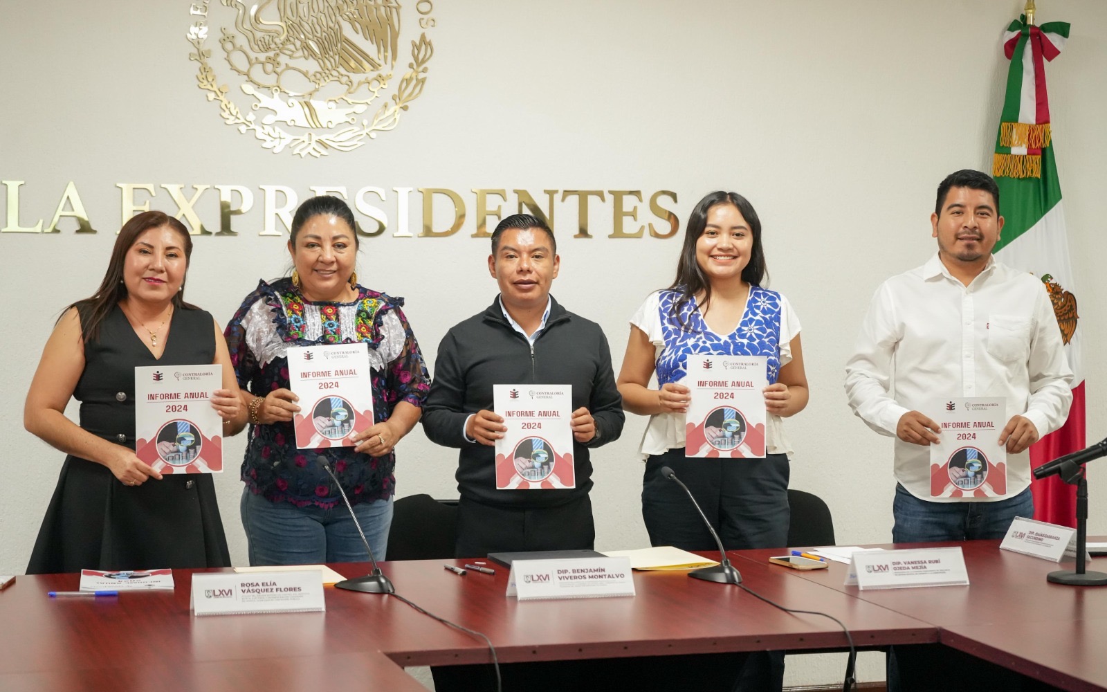 San Raymundo Jalpan, Oax., a 04 de agosto de 2025.- El Congreso del Estado de Oaxaca a través de la Junta de Coordinación Política (Jucopo) y la Comisión Permanente de Vigilancia del Sistema Estatal de Combate a la Corrupción recibió el Informe Anual de Resultados correspondiente al Ejercicio Fiscal 2024 del Instituto Estatal Electoral y de Participación Ciudadana de Oaxaca (IEEPCO), por parte de la titular de la Contraloría General de este organismo, Rosa Elia Vásquez Flores.